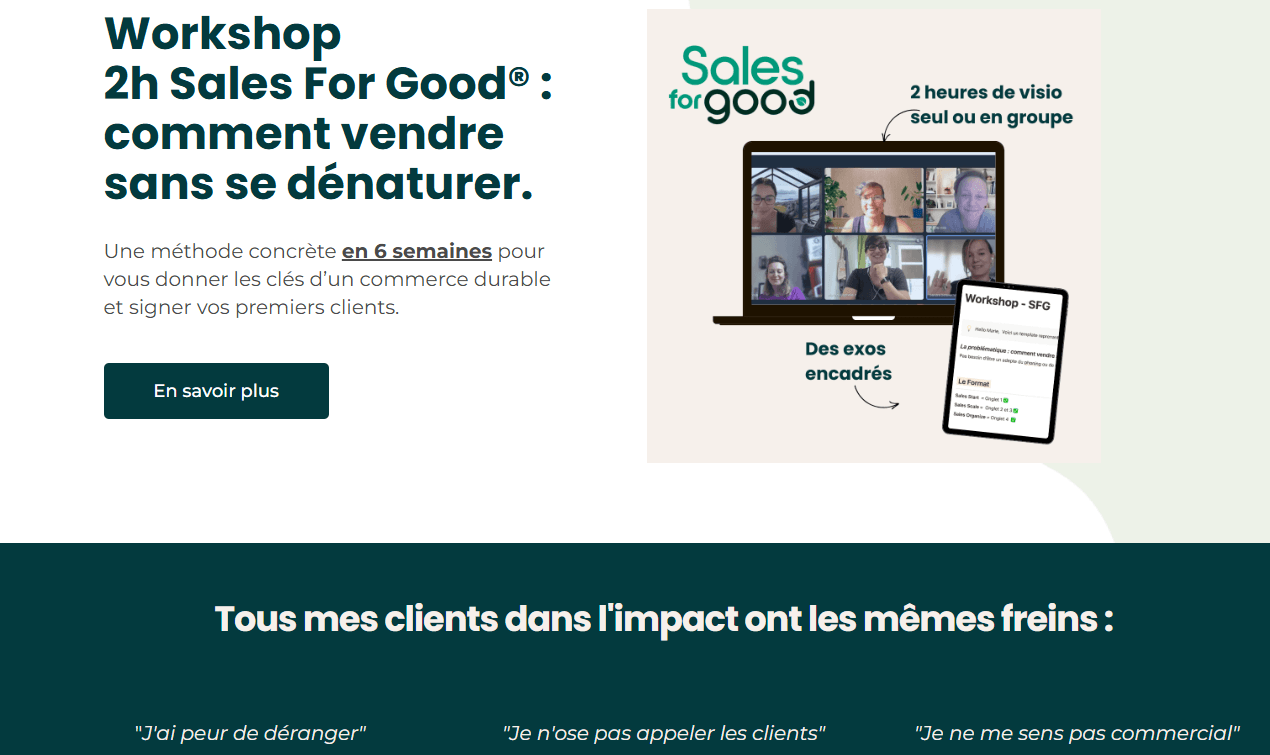 Réalisation du tunnel de vente pour le Workshop "2h Sales for Good" de Sandra Detavernier
