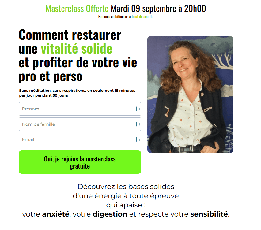 Réalisation du tunnel d'inscription pour le webinaire de Claire Marino