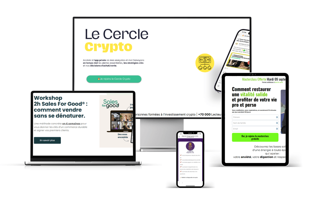 Réalisation du tunnel de vente pour Le Cercle Crypto par Caroline Jurado "Les Cryptos de Caro"